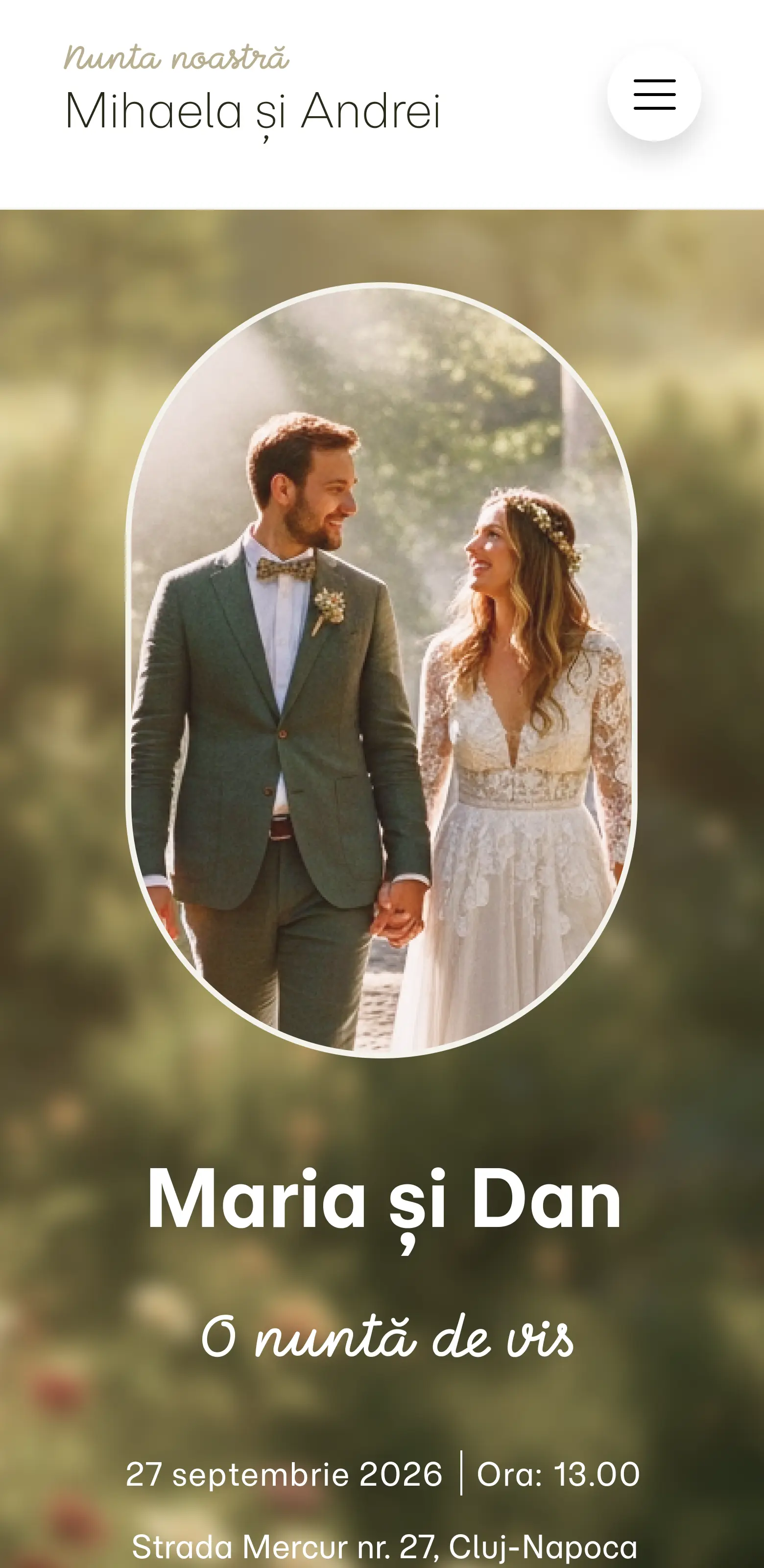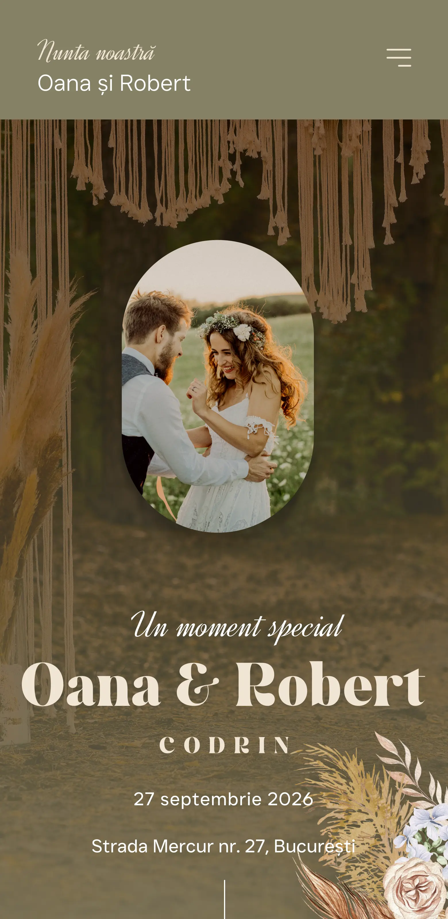 Fă primul pas spre evenimentul tău memorabil cu o invitație digitală unică.
